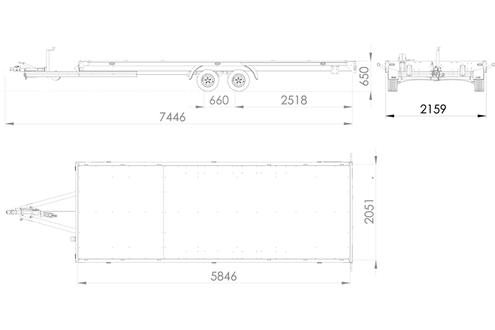 <div>Zweiachsiger Abschleppwagen UNITRAILER UNIPLAT 600 ALU. zulässiges Gesamtgewicht von 3500 kg. Abmessungen der Ladefläche: 5900 x 2120 mm. Mit 2500 mm Rampen.</div>