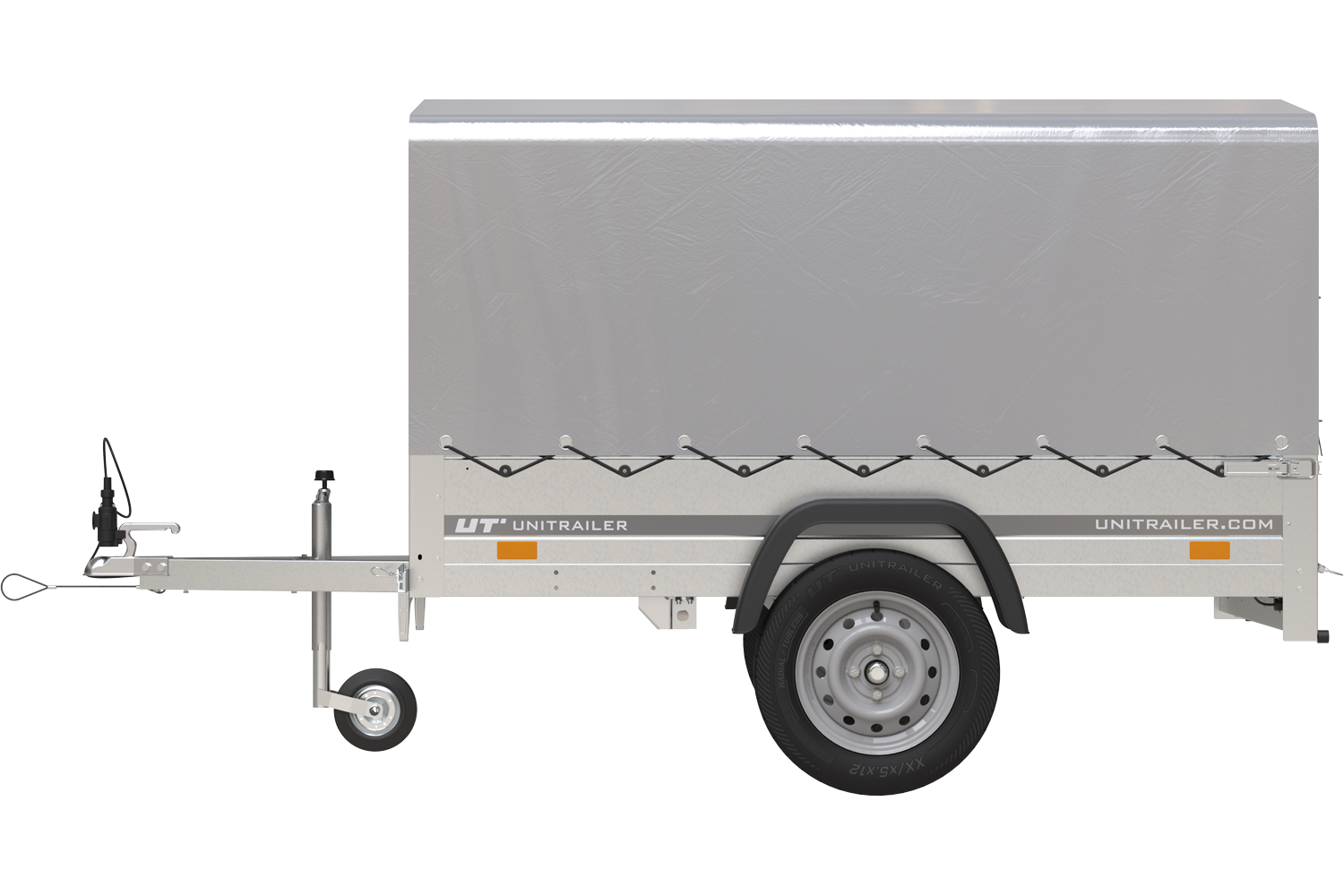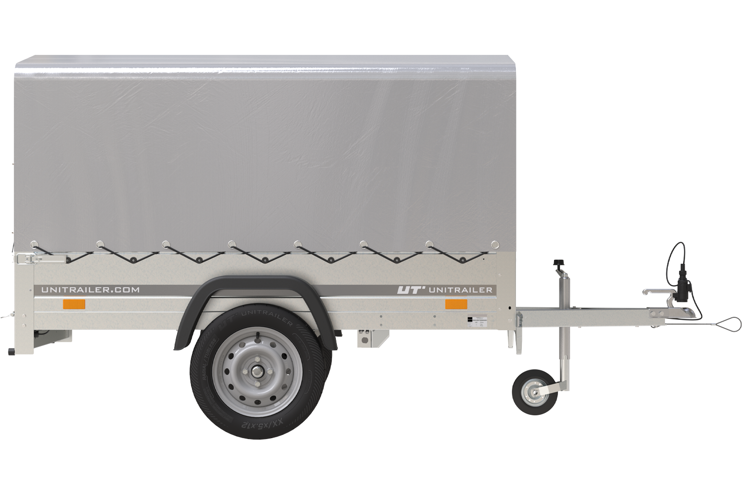 <div>750-kg-Anhänger der Marke UNITRAILER, Modell Garden Trailer 201 KIPP mit Kuppelabdeckung und Bogen. Universeller Kippanhänger. Bruttogewicht standardmäßig 500 kg in Frankreich und 750 kg in Belgien.</div>